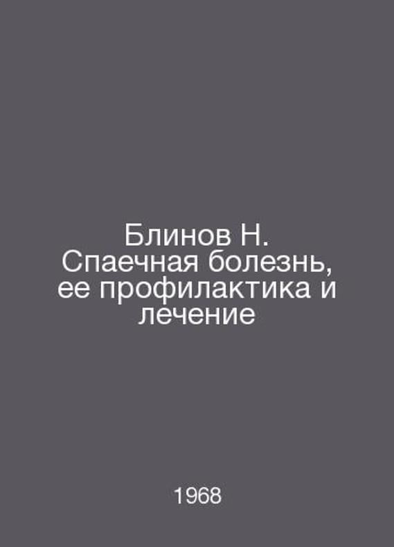 Plinov N. Sputnik disease, its prevention and treatment In Russian /Blinov N. Spaechnaya bolezn, ee profilaktika i lechenie BPR L Medicine 1968.Contact us for details or to request photos of available books. Delivery of this book could take longer than normal due to additional handling time before shipping, and no rush delivery options are available. Please let us know if you have a specific date by which you need to receive your order.SKUalb37fd46855372aa4e