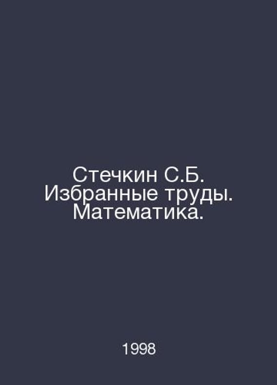 Stechkin S.B. Selected works. Mathematics. In Russian /Stechkin S.B. Izbrannye trudy. Matematika. M. Science 1998.Contact us for details or to request photos of available books. Delivery of this book could take longer than normal due to additional handling time before shipping, and no rush delivery options are available. Please let us know if you have a specific date by which you need to receive your order.SKUalb3812811eaea2c9a0