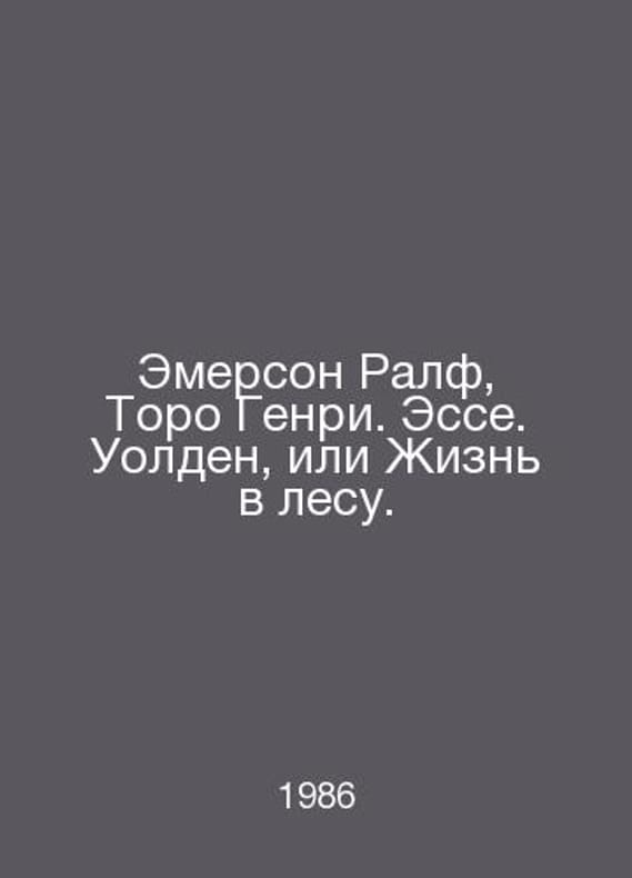 Emerson Ralph, Thoreau Henry. Essay. Walden, or Life in the Forest. In Russian /Emerson Ralf, Toro Genri. Esse. Uolden, ili Zhizn v lesu. Series: Library of Literature of the United States. Translation from English. Compilation by N. Pokrovsky, N. Sibiryakov. M. Art literature. 1986.Contact us for details or to request photos of available books. Delivery of this book could take longer than normal due to additional handling time before shipping, and no rush delivery options are available. Please let us know if you have a specific date by which you need to receive your order.SKUalb38709daf6f0cc371