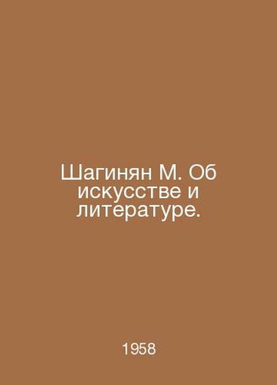 Shahinyan M. On Art and Literature. In Russian /Shaginyan M. Ob iskusstve i literature. Articles and Speeches by M Council writer 1958. Contact us for details or to request photos of available books. Delivery of this book could take longer than normal due to additional handling time before shipping, and no rush delivery options are available. Please let us know if you have a specific date by which you need to receive your order. SKUalb3876249af950d9b1