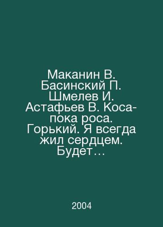 Makanin V. Basinsky Shmelev I. Astafiev V. Kosa-while-dew. Gorky. I have always lived with my heart. Truth will be demanded. In Russian /Makanin V. Basinskiy Shmelev I. Astafev V. Kosa-poka rosa. Gorkiy. Ya vsegda zhil serdtsem. Budet vostrebovana pravda. New World 112004 2004.Contact us for details or to request photos of available books. Delivery of this book could take longer than normal due to additional handling time before shipping, and no rush delivery options are available. Please let us know if you have a specific date by which you need to receive your order.SKUalb38a66c2eb9aabdb7