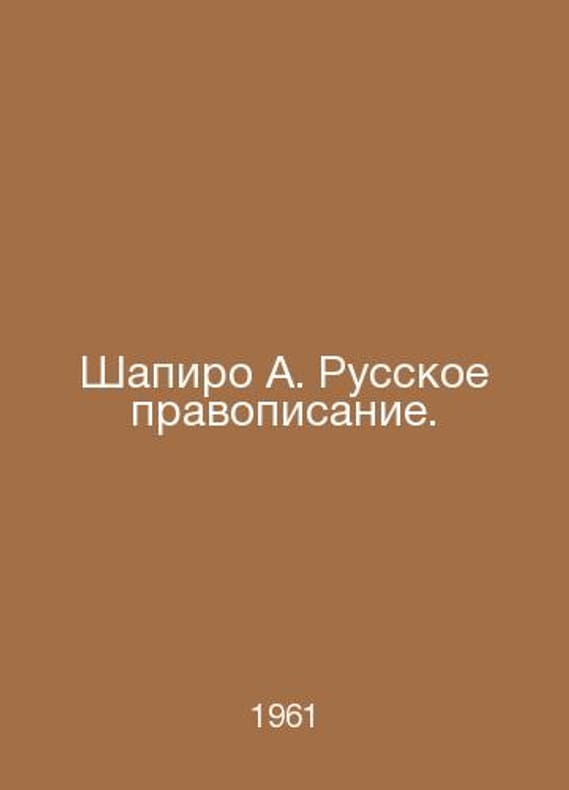 Shapiro A. Russian spelling. In Russian /Shapiro A. Russkoe pravopisanie. Issue 2 M of the USSR Academy of Sciences 1961.. Contact us for details or to request photos of available books. SKUalb395add75cd684aef.