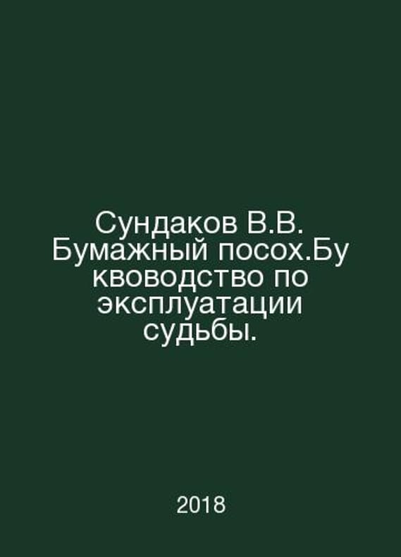 Sundakov V.V. Paper-based bookkeeping for exploitation of fate. In Russian /Sundakov V.V. Bumazhnyy posokh.Bukvovodstvo po ekspluatatsii sudby. Series: Masters School. The book is decorated with the work of the artist A.T.Fomenko. M AST 2018. Contact us for details or to request photos of available books. Delivery of this book could take longer than normal due to additional handling time before shipping, and no rush delivery options are available. Please let us know if you have a specific date by which you need to receive your order. SKUalb396b793ebf39c714