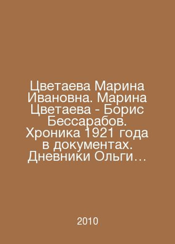 Marina Tsvetaeva. Marina Tsvetaeva - Boris Bessarabov. Chronicle of 1921 in documents. Olga Bessarabovas Diaries. In Russian /Tsvetaeva Marina Ivanovna. Marina Tsvetaeva - Boris Bessarabov. Khronika 1921 goda v dokumentakh. Dnevniki Olgi Bessarabovoy. Ellis Luck 2010. Contact us for details or to request photos of available books. Delivery of this book could take longer than normal due to additional handling time before shipping, and no rush delivery options are available. Please let us know if you have a specific date by which you need to receive your order. SKUalb399ba41deb88ddb2