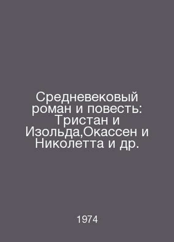 The Medieval Novel and Tale: Tristan and Isolde, Aucassin and Nicoletta et al. In Russian /Srednevekovyy roman i povest: Tristan i Izolda,Okassen i Nikoletta i dr. M.: Library of World Literature 1974. Contact us for details or to request photos of available books. Delivery of this book could take longer than normal due to additional handling time before shipping, and no rush delivery options are available. Please let us know if you have a specific date by which you need to receive your order.SKUalb3b0c72eb265782dc