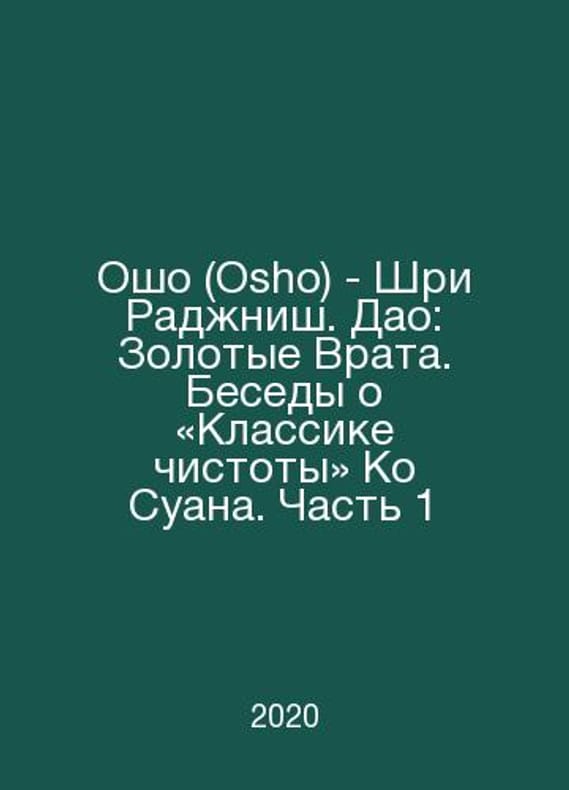 Osho - Sri Rajneesh. Tao: The Golden Gate. Conversations on the Classics of Purity by Koh Suan. Part 1 In Russian /Osho (Osho) - Shri Radzhnish. Dao: Zolotye Vrata. Besedy o ´Klassike chistoty Ko Suana. Chast 1 Sat.: All 2020. Contact us for details or to request photos of available books. Delivery of this book could take longer than normal due to additional handling time before shipping, and no rush delivery options are available. Please let us know if you have a specific date by which you need to receive your order. SKUalb3b95047a778e78cc
