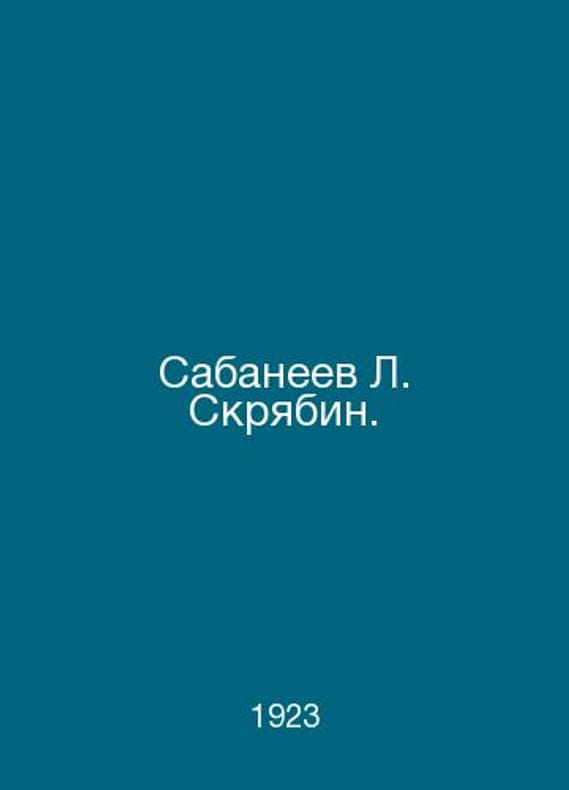 Sabaneev L. Scriabin. In Russian /Sabaneev L. Skryabin. 2nd edition revised by the author. M.-Petrograd. Gosizdat. 1923.Contact us for details or to request photos of available books. Delivery of this book could take longer than normal due to additional handling time before shipping, and no rush delivery options are available. Please let us know if you have a specific date by which you need to receive your order.SKUalb3bebe664d7391d79