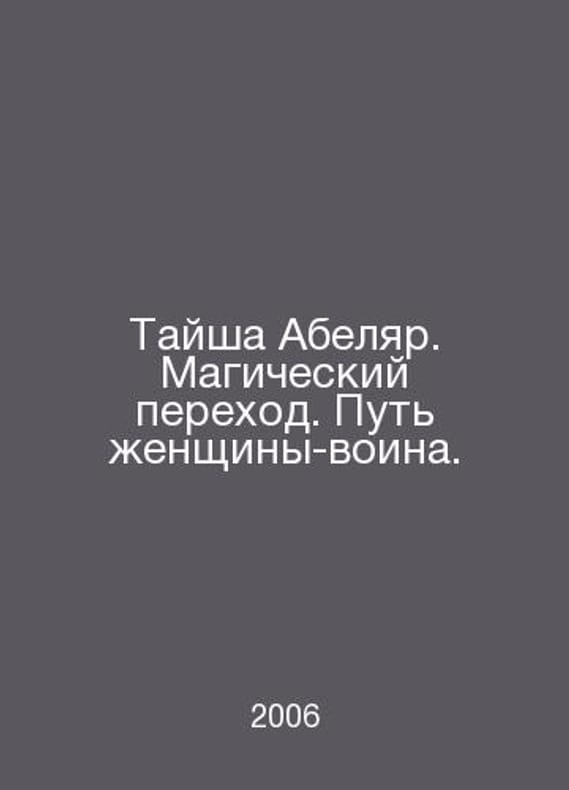 Taisha Abelar. Magical Transition. The Way of the Warrior Woman. In Russian /Taysha Abelyar. Magicheskiy perekhod. Put zhenshchiny-voina. The introduction of Carlos Castaneda. Translated from English by A. Mischenko and M. Sofia, 2006. Contact us for details or to request photos of available books. Delivery of this book could take longer than normal due to additional handling time before shipping, and no rush delivery options are available. Please let us know if you have a specific date by which you need to receive your order. SKUalb3c035222a85fdc64