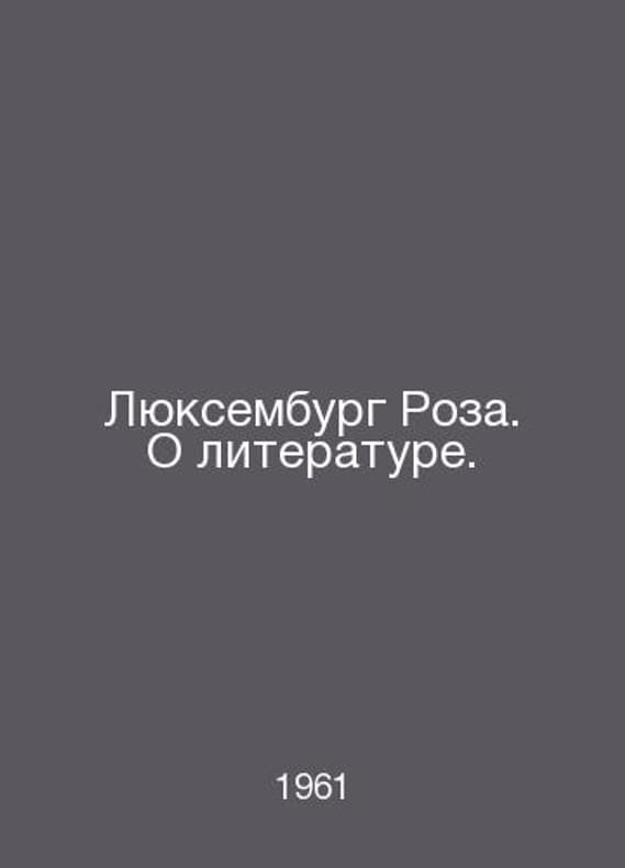 Luxembourg Rosa. On Literature. In Russian /Lyuksemburg Roza. O literature. Compilation, translations, introductory article and notes by M. Korallov. Decoration by G. Kravtsov. Series: Monuments of World Aesthetic and Critical Thought. M. Goslitizdat 1961. Contact us for details or to request photos of available books. Delivery of this book could take longer than normal due to additional handling time before shipping, and no rush delivery options are available. Please let us know if you have a specific date by which you need to receive your order. SKUalb3ccb5350832917de