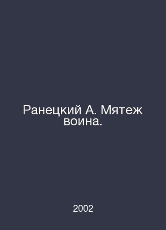 Ranetsky A. Revolt of the warrior. In Russian /Ranetskiy A. Myatezh voina. Fantastic action (series) M ARMADA 2002. Contact us for details or to request photos of available books. Delivery of this book could take longer than normal due to additional handling time before shipping, and no rush delivery options are available. Please let us know if you have a specific date by which you need to receive your order.SKUalb3dcadb7b3702a9e2