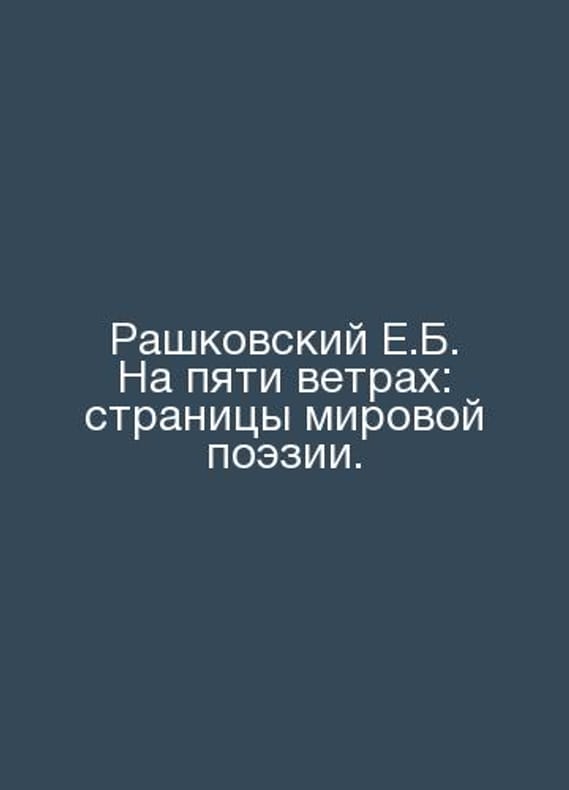 Rashkovsky E.B. On the Five Winds: Pages of World Poetry. In Russian /Rashkovskiy E.B. Na pyati vetrakh: stranitsy mirovoy poezii. M. Vorobyov A.V. 2023. 152s.Contact us for details or to request photos of available books. Delivery of this book could take longer than normal due to additional handling time before shipping, and no rush delivery options are available. Please let us know if you have a specific date by which you need to receive your order.SKUalb3e4ade03297d1421
