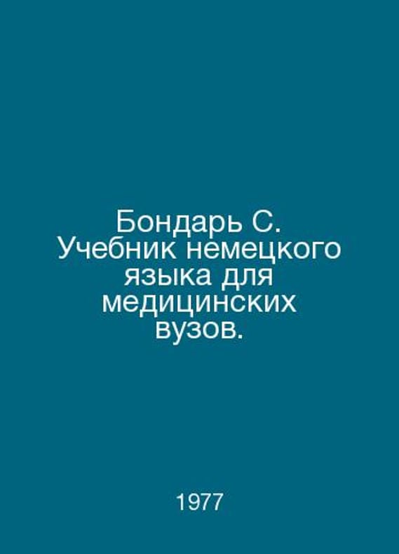 Bondar S. German language textbook for medical schools. In Russian /Bondar S. Uchebnik nemetskogo yazyka dlya meditsinskikh vuzov. Issue 2 M High School 1977.. Contact us for details or to request photos of available books. SKUalb3f60462eac153f4a.