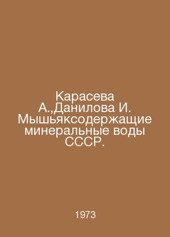 Karaseva A., Danilova I. Arsenic mineral waters of the USSR. In Russian /Karaseva A., Danilova I. Myshyaksoderzhashchie mineralnye vody SSSR. Central Research Institute of Resort and Physiotherapy, Proceedings of the Institute t.26 M. Ministry of Health of the USSR. 1973.Contact us for details or to request photos of available books. Delivery of this book could take longer than normal due to additional handling time before shipping, and no rush delivery options are available. Please let us know if you have a specific date by which you need to receive your order.SKUalb3f6edcc7ec05af6b