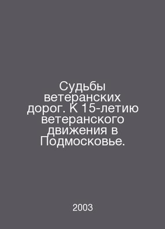 The Fates of Veterans Roads. To the 15th Anniversary of the Veterans Movement in the Moscow Region. In Russian /Sudby veteranskikh dorog. K 15-letiyu veteranskogo dvizheniya v Podmoskove. Docum- publicist almanac. M. Modern notebooks. 2003. Contact us for details or to request photos of available books. Delivery of this book could take longer than normal due to additional handling time before shipping, and no rush delivery options are available. Please let us know if you have a specific date by which you need to receive your order.SKUalb3f7ae68934e95a73