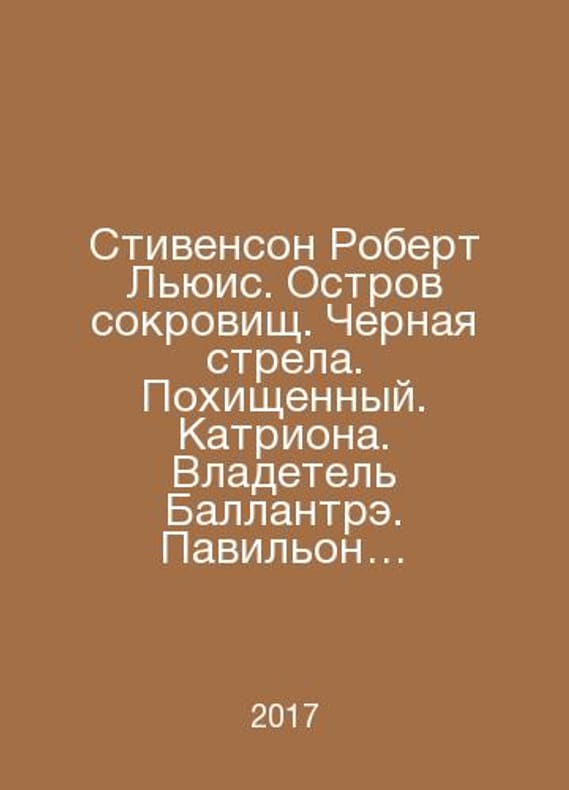 Stevenson Robert Lewis. Treasure Island. Black Arrow. Kidnapped. Catriona. Owner of Ballantree. Pavilion on the hS.Pb.The strange story of Dr. Jekyll and Mr. Hyde. In Russian /Stivenson Robert Lyuis. Ostrov sokrovishch. Chernaya strela. Pokhishchennyy. Katriona. Vladetel Ballantre. Pavilon na kholme. Strannaya istoriya doktora Dzhekila i mistera Khayda. Series: The Complete Illustrated Edition in One Volume. Moscow Alpha Book 2017.Contact us for details or to request photos of available books. Delivery of this book could take longer than normal due to additional handling time before shipping, and no rush delivery options are available. Please let us know if you have a specific date by which you need to receive your order.SKUalb3fe04a0cc1d48088