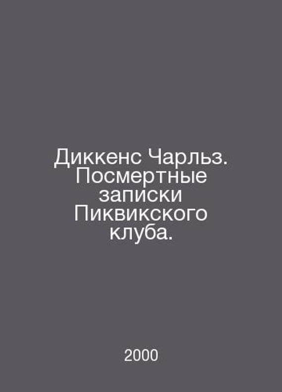 Dickens Charles: The posthumous notes of the Pickwick Club. In Russian /Dikkens Charlz. Posmertnye zapiski Pikvikskogo kluba. Moscow Nezavisimaya Gazeta 2000. Contact us for details or to request photos of available books. Delivery of this book could take longer than normal due to additional handling time before shipping, and no rush delivery options are available. Please let us know if you have a specific date by which you need to receive your order. SKUalb3fe780413a89dd41
