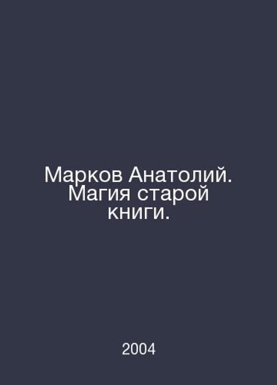 Markov Anatoly. The magic of the old book. In Russian /Markov Anatoliy. Magiya staroy knigi. Notes of a bibliophile. Moscow Agraph. 2004.. Contact us for details or to request photos of available books. SKUalb40b4c1e7ec3a6ddb.