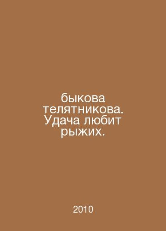Bull calves. Luck loves redheads. In Russian /bykova telyatnikova. Udacha lyubit ryzhikh. Trilogy series in one volume. M. Alpha book. 2010. Contact us for details or to request photos of available books. Delivery of this book could take longer than normal due to additional handling time before shipping, and no rush delivery options are available. Please let us know if you have a specific date by which you need to receive your order.SKUalb4252e49717a4cbe1