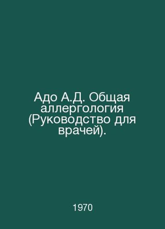 Ado A.D. General Allergology (Physicians Guide). In Russian /Ado A.D. Obshchaya allergologiya (Rukovodstvo dlya vrachey). M. Medicine. 1970.. Contact us for details or to request photos of available books. SKUalb42d11ea6a91bb3d2.
