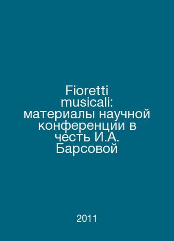 Fioretti musicali: proceedings of the scientific conference in honor of I. A. Barsova In Russian /Fioretti musicali: materialy nauchnoy konferentsii v chest I.A. Barsovoy M. MK 2011. Contact us for details or to request photos of available books. Delivery of this book could take longer than normal due to additional handling time before shipping, and no rush delivery options are available. Please let us know if you have a specific date by which you need to receive your order.SKUalb43be2ac35c890bd8