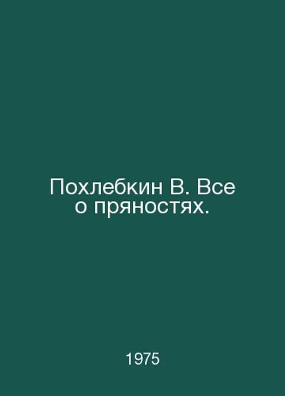 Pokhlebkin V. All about spices. In Russian /Pokhlebkin V. Vse o pryanostyakh. M Food 1975.. Contact us for details or to request photos of available books. SKUalb44155437fa0363c3.