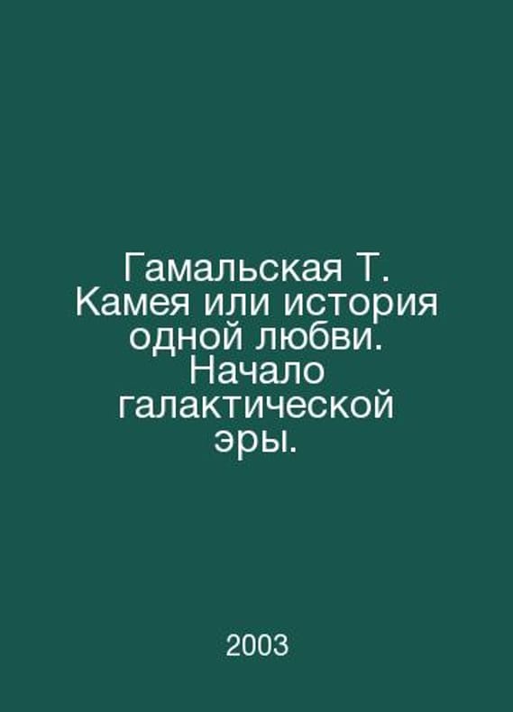 Gamal T. Cameo or a love story. The beginning of the galactic era. In Russian /Gamalskaya T. Kameya ili istoriya odnoy lyubvi. Nachalo galakticheskoy ery. Petrozavodsk 2003.Contact us for details or to request photos of available books. Delivery of this book could take longer than normal due to additional handling time before shipping, and no rush delivery options are available. Please let us know if you have a specific date by which you need to receive your order.SKUalb447017872ab3c194