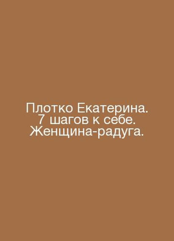 Catherines flesh. 7 steps to herself. A rainbow woman. In Russian /Plotko Ekaterina. 7 shagov k sebe. Zhenshchina-raduga. Series: Star of Runet. Moscow ACT 2021. 288 p., il. Contact us for details or to request photos of available books. Delivery of this book could take longer than normal due to additional handling time before shipping, and no rush delivery options are available. Please let us know if you have a specific date by which you need to receive your order. SKUalb4514c39d2ba4cc4c