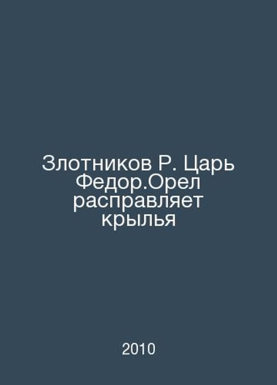 Zlotnikov R. Tsar Fedor. The eagle spreads its wings In Russian /Zlotnikov R. Tsar Fedor.Orel raspravlyaet krylya The series: The fantastic story of M. Alpha-book 2010. Contact us for details or to request photos of available books. Delivery of this book could take longer than normal due to additional handling time before shipping, and no rush delivery options are available. Please let us know if you have a specific date by which you need to receive your order.SKUalb45345b984cdcfa35