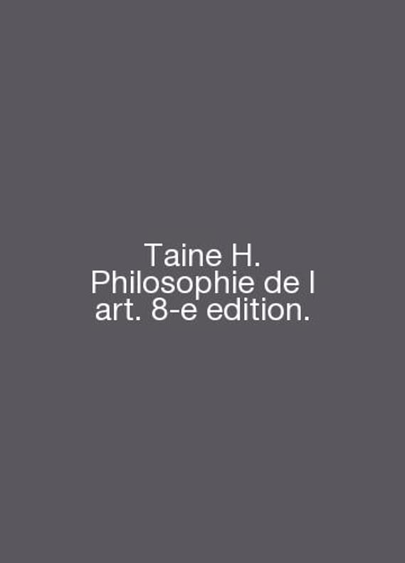 Taine H. Philosophie de l art. 8 edition. In English /Taine H. Philosophie de l art. 8-e edition. Tome premier. Paris Hachette, Unspecified Year 330Contact us for details or to request photos of available books. Delivery of this book could take longer than normal due to additional handling time before shipping, and no rush delivery options are available. Please let us know if you have a specific date by which you need to receive your order.SKUalb456946dd84d10ef7