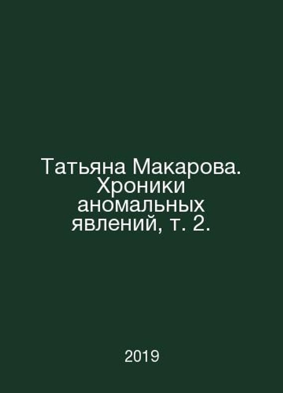 Tatiana Makarova. Chronicles of anomalies, vol. 2. In Russian /Tatyana Makarova. Khroniki anomalnykh yavleniy, t. 2. M. Stigmarion 2019. Contact us for details or to request photos of available books. Delivery of this book could take longer than normal due to additional handling time before shipping, and no rush delivery options are available. Please let us know if you have a specific date by which you need to receive your order. SKUalb458dcad82505cf97