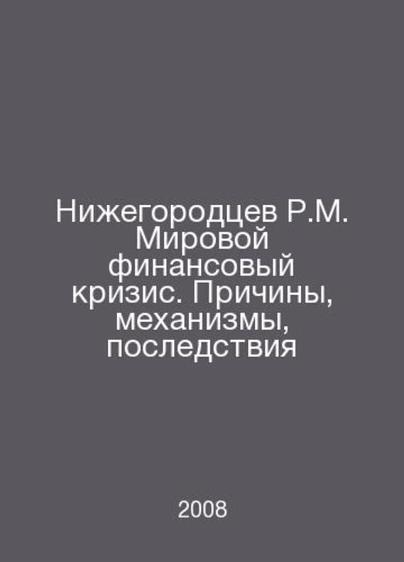 R.M. Nizhny Novgorodtsev The Global Financial Crisis: Causes, Mechanisms, and Consequences In Russian /Nizhegorodtsev R.M. Mirovoy finansovyy krizis. Prichiny, mekhanizmy, posledstviya M. LIBROCOM: URSS 2008. Contact us for details or to request photos of available books. Delivery of this book could take longer than normal due to additional handling time before shipping, and no rush delivery options are available. Please let us know if you have a specific date by which you need to receive your order.SKUalb464d58e9607a0083