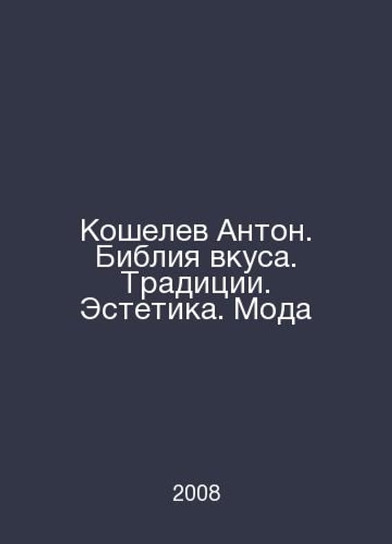 Koshelev Anton. The Bible of taste. Tradition. Aesthetics. Fashion In Russian /Koshelev Anton. Bibliya vkusa. Traditsii. Estetika. Moda Exmo 2008.. Contact us for details or to request photos of available books. SKUalb469d7194d58e1dcf.