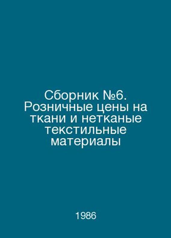 Compendium # 6. Retail prices for fabrics and non-woven textiles In Russian /Sbornik #6. Roznichnye tseny na tkani i netkanye tekstilnye materialy M Pricelist 1986.. Contact us for details or to request photos of available books. SKUalb476aaf0113b40c22.