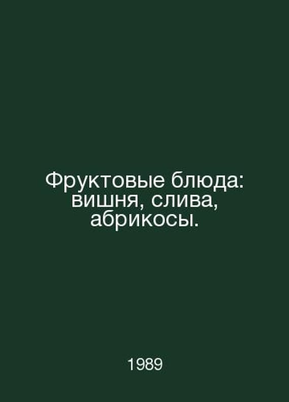 Fruit dishes: cherries, plums, apricots. In Russian /Fruktovye blyuda: vishnya, sliva, abrikosy. M 1989.. Contact us for details or to request photos of available books. SKUalb47b0dc7e79979704.