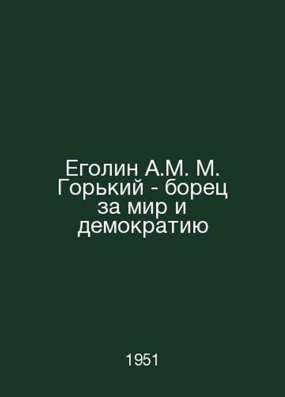 Egorin A.M. Gorky - a fighter for peace and democracy In Russian /Egolin A.M. M. Gorkiy - borets za mir i demokratiyu M State Educational and Cultural Litas of 1951. Contact us for details or to request photos of available books. Delivery of this book could take longer than normal due to additional handling time before shipping, and no rush delivery options are available. Please let us know if you have a specific date by which you need to receive your order. SKUalb47d54ff9ab152b13