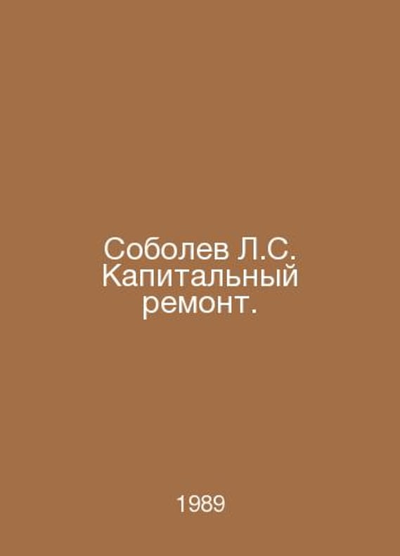 Sobolev L.C. Major repairs. In Russian /Sobolev L.S. Kapitalnyy remont. M. Khozh. Lit. 1989.Contact us for details or to request photos of available books. Delivery of this book could take longer than normal due to additional handling time before shipping, and no rush delivery options are available. Please let us know if you have a specific date by which you need to receive your order.SKUalb47e377afa5f4c55c