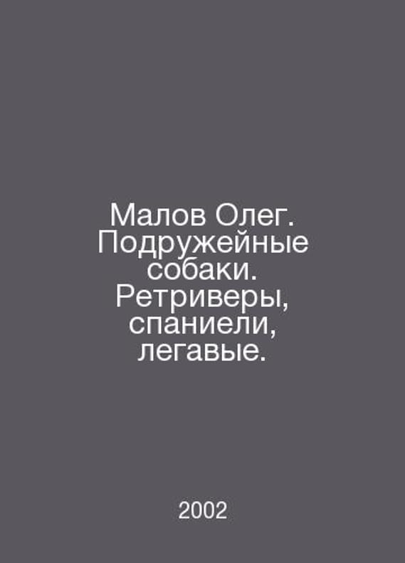 Malov Oleg. Friendly dogs. Retrievers, spaniels, legal. In Russian /Malov Oleg. Podruzheynye sobaki. Retrivery, spanieli, legavye. Series: World of Hunting. M. Veche. 2002.Contact us for details or to request photos of available books. Delivery of this book could take longer than normal due to additional handling time before shipping, and no rush delivery options are available. Please let us know if you have a specific date by which you need to receive your order.SKUalb48522dce0a7cc241