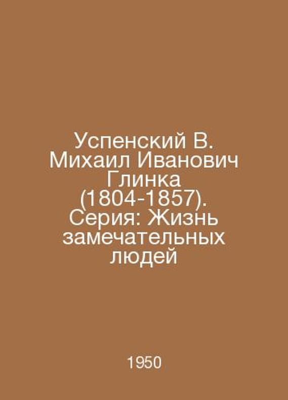 Uspensky V. Mikhail Ivanovich Glinka (1804-1857) In Russian /Uspenskiy V. Mikhail Ivanovich Glinka (1804-1857). Seriya: Zhizn zamechatelnykh lyudey M Mol.Guards 1950.Contact us for details or to request photos of available books. Delivery of this book could take longer than normal due to additional handling time before shipping, and no rush delivery options are available. Please let us know if you have a specific date by which you need to receive your order.SKUalb499835cf55fc9702