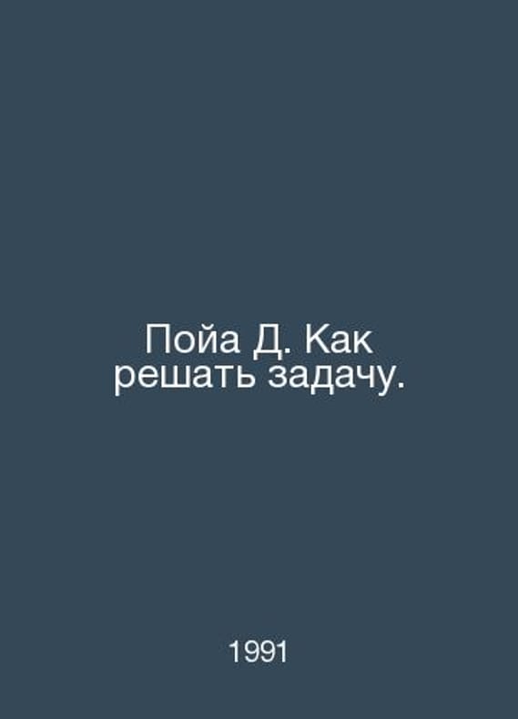 Poya D. How to solve a problem. In Russian /Poya D. Kak reshat zadachu. Teachers Manual. M. Uchpedgiz. 1961.Contact us for details or to request photos of available books. Delivery of this book could take longer than normal due to additional handling time before shipping, and no rush delivery options are available. Please let us know if you have a specific date by which you need to receive your order.SKUalb9083983bd3594792