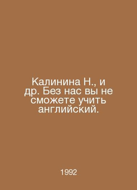 Kalinina N., et al. Without us, you will not be able to learn English. In Russian /Kalinina N., i dr. Bez nas vy ne smozhete uchit angliyskiy. Modern English-Russian Phraseological Dictionary of M 1992.. Contact us for details or to request photos of available books. SKUalb4a315341dd4780bf.