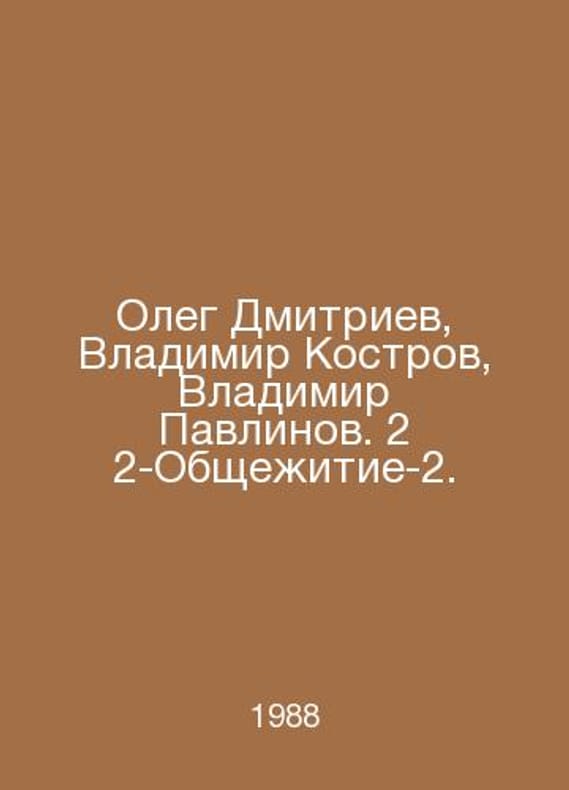 Oleg Dmitriev, Vladimir Kostrov, Vladimir Pavlinov. 2 2-Dormitory-2. In Russian /Oleg Dmitriev, Vladimir Kostrov, Vladimir Pavlinov. 2 2-Obshchezhitie-2. M Mol.Guards 1988.Contact us for details or to request photos of available books. Delivery of this book could take longer than normal due to additional handling time before shipping, and no rush delivery options are available. Please let us know if you have a specific date by which you need to receive your order.SKUalb4aa032fc8205f062