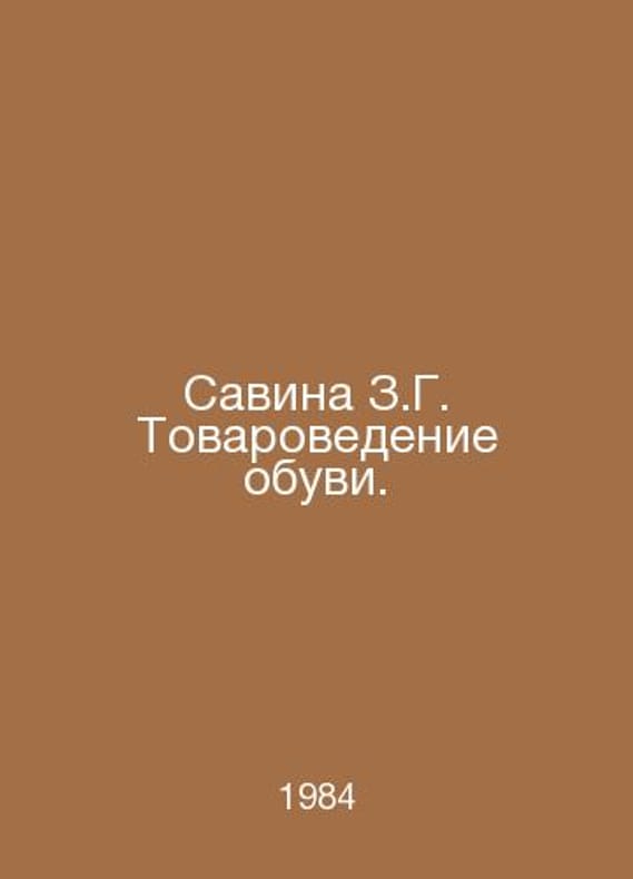 Savina Z.G. Commodity studies of shoes. In Russian /Savina Z.G. Tovarovedenie obuvi. M Economics 1984.. Contact us for details or to request photos of available books. SKUalb4ae8f7d388eb991c.
