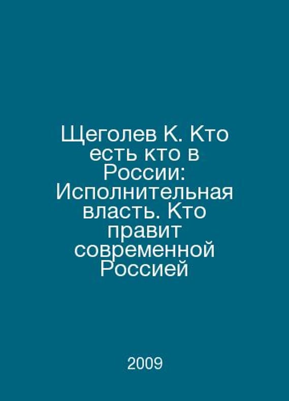 Shchegolev K. Who is Who in Russia: Executive Power. Who Rules Modern Russia In Russian /Shchegolev K. Kto est kto v Rossii: Ispolnitelnaya vlast. Kto pravit sovremennoy Rossiey M. ACT 2009.Contact us for details or to request photos of available books. Delivery of this book could take longer than normal due to additional handling time before shipping, and no rush delivery options are available. Please let us know if you have a specific date by which you need to receive your order.SKUalb4b5478390c08d15d