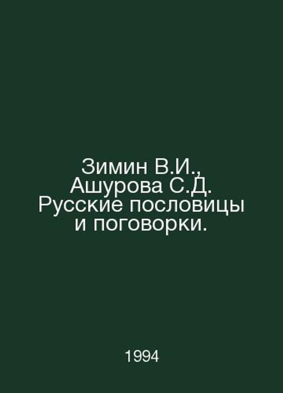 Zimin V.I., Ashurova S.D. Russian proverbs and proverbs. In Russian /Zimin V.I., Ashurova S.D. Russkie poslovitsy i pogovorki. Moscow School-Press Dictionary 1994. Contact us for details or to request photos of available books. Delivery of this book could take longer than normal due to additional handling time before shipping, and no rush delivery options are available. Please let us know if you have a specific date by which you need to receive your order. SKUalb4c1fc3b361a44890