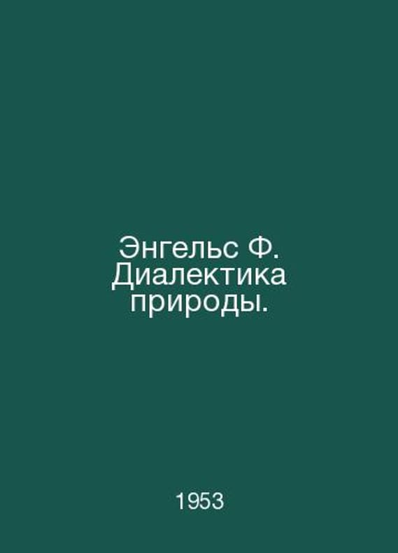 Engels F. The Dialectics of Nature. In Russian /Engels F. Dialektika prirody. M Politizdat 1955.You are welcome to reach out to us for a detailed description of the copies currently available. SKUalb7db4e5d27c50a456.