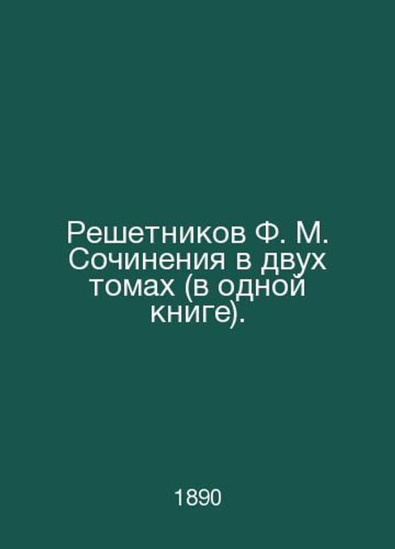 Reshetnikov F.M. Works in two volumes (in one book). In Russian /Reshetnikov F. M. Sochineniya v dvukh tomakh (v odnoy knige). St. Petersburg 1890. Contact us for details or to request photos of available books. Delivery of this book could take longer than normal due to additional handling time before shipping, and no rush delivery options are available. Please let us know if you have a specific date by which you need to receive your order.SKUalb4d485dd06571744d