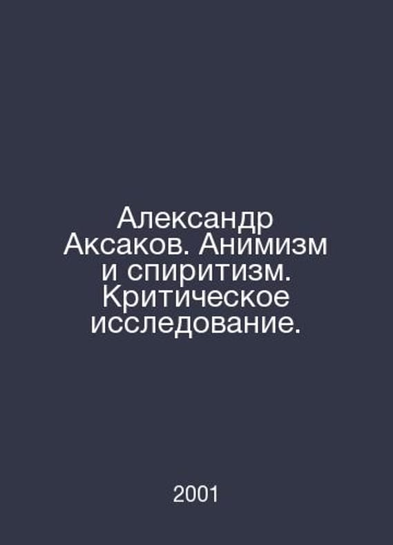 Alexander Aksakov. Animism and Spiritualism. Critical Research. In Russian /Aleksandr Aksakov. Animizm i spiritizm. Kriticheskoe issledovanie. Sign of the Times series. M. Agraph. 2001. Contact us for details or to request photos of available books. Delivery of this book could take longer than normal due to additional handling time before shipping, and no rush delivery options are available. Please let us know if you have a specific date by which you need to receive your order. SKUalb4de3c5ca985edca5