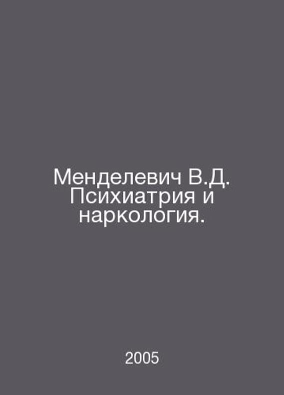 Mendelevich V.D. Psychiatry and Addiction. In Russian /Mendelevich V.D. Psikhiatriya i narkologiya. M Medicine 2005.Contact us for details or to request photos of available books. Delivery of this book could take longer than normal due to additional handling time before shipping, and no rush delivery options are available. Please let us know if you have a specific date by which you need to receive your order.SKUalb4e11036d46361dab