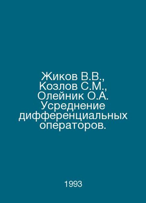Zhikov V.V., Kozlov S.M., Oleynik O.A. Average of differential operators. In Russian /Zhikov V.V., Kozlov S.M., Oleynik O.A. Usrednenie differentsialnykh operatorov. M. Nauka. 1993.Contact us for details or to request photos of available books. Delivery of this book could take longer than normal due to additional handling time before shipping, and no rush delivery options are available. Please let us know if you have a specific date by which you need to receive your order.SKUalb4eae49e2c82cb015