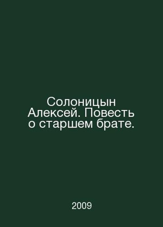Alexey Solonitsyn. The Tale of the Big Brother. In Russian /Solonitsyn Aleksey. Povest o starshem brate. Samara. Book 2009 year.. Contact us for details or to request photos of available books. SKUalb4f28cdc48442f6a7.